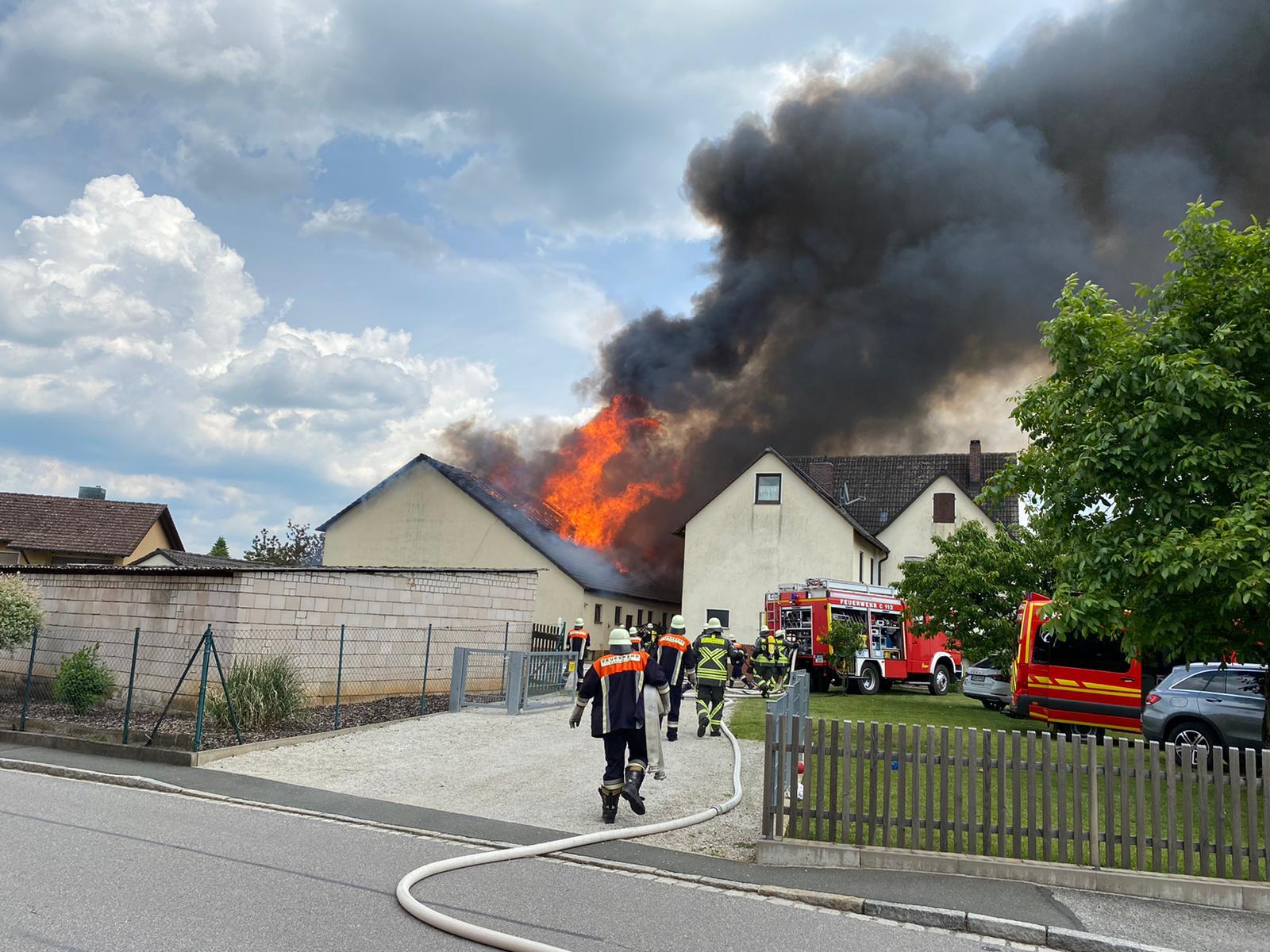 Um das Übergreifen des Brandes, aufgrund der engen Bebauung, auf anliegende Garagen, Scheunen und Wohnhäuser zu verhindern, wurden die Feuerwehren aus Röthenbach und Gersdorf nachalarmiert.