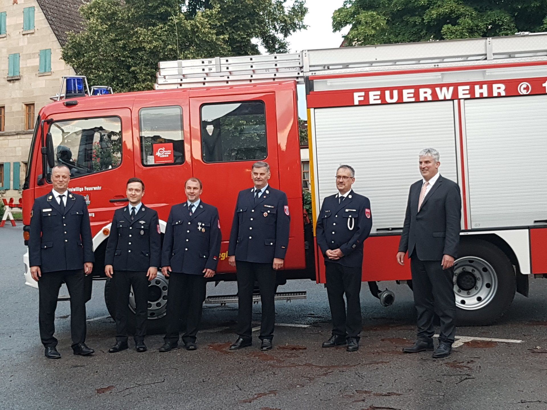 Neben den aktiven Kameraden waren auch der 1. Bürgermeister der Stadt Lauf Thomas Lang, Pfarrerin Gabriele Geyer, Kreisbrandrat Norbert Thiel sowie der Kreisbrandmeister und federführende Kommandant der Stadt Lauf Oliver Heinecke zu diesem feierlichen Anlass gekommen.